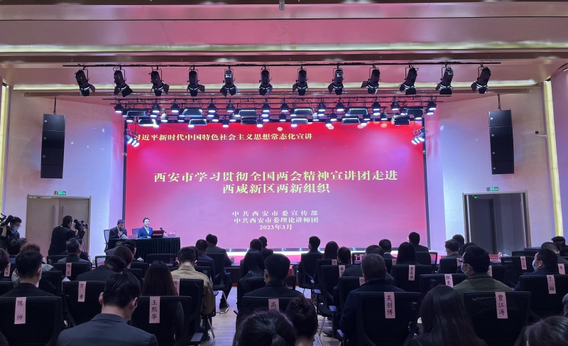 3月28日,西安市学习贯彻全国两会精神宣讲团走进西咸新区。全国人大代表、西安市学习贯彻全国两会精神宣讲团成员崔荣华来到西咸新区沣东自贸新天地,为新区两新组织员工代表作全国两会精神宣讲报告。