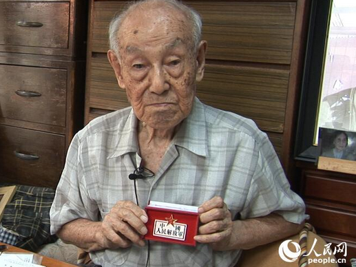2015年,小林宽澄向人民网记者展示中国人民解放军纪念勋章(赵松摄)