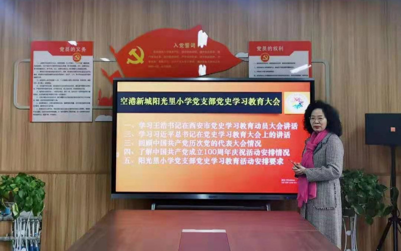 空港新城阳光里小学开展“学党史铭记初心”活动,由党支部书记带领学校全体党员教师学党史悟思想,干实事开新局,力求每名党员都可以在自己的岗位上发挥先锋带头作用,以行动庆祝建党100周年。