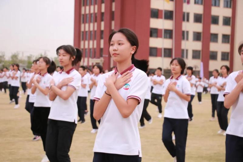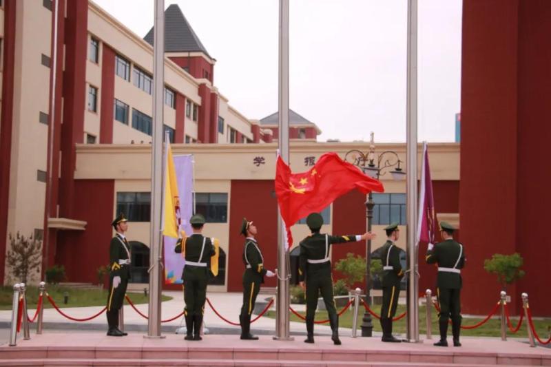 英姿飒爽的国旗护卫队迈着坚定整齐的步伐,护卫着五星红旗步入会场。伴随着雄壮嘹亮的国歌声,鲜艳的国旗冉冉升起,奋进的青春力量,骤然在校园里凝聚升腾。