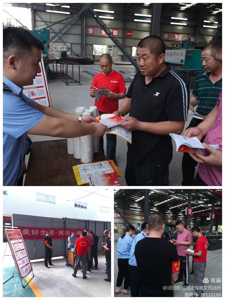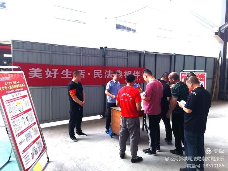 时值《民法典》颁布一周年,为了进一步向辖区群众普及法律知识,使《民法典》融入人民群众日常生活,促进公民法治素养提升,培育群众遇事找法、解决问题用法、化解矛盾靠法的法治意识,6月2日,泾河新城司法局崇文司法所联合崇文镇平安建设与应急管理办深入辖区西安望江宏彩钢钢构有限公司开展一场以“美好生活•民法典相伴”为主题的法律进企业普法宣传活动。
