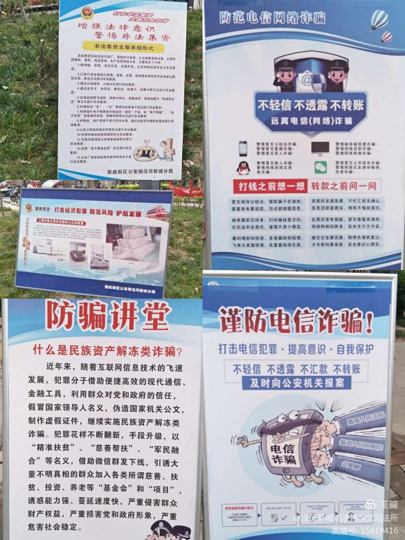 为贯彻落实《防范和处置非法集资条例》精神,加大普法防非宣传力度,提升人民群众对非法集资的防范意识,6月15日,泾河新城崇文司法所联合新城金融管理办公室、市监部门、公安部门在崇文佳苑一区开展主题为“学法用法护小家,防非处非靠大家”的普法宣传活动。