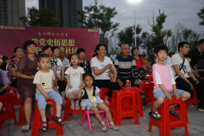 活动在泾河新城第三学校物业职工和崇文佳苑群众的舞蹈表演中走向高潮,红歌高唱,振奋人心,现场群众纷纷鼓掌叫好。启动仪式结束后,在瀛洲公园广场内播放电影《建国大业》,让大家重温了中国共产党建立的艰难过程,感受党从烽火岁月到小康生活的来之不易。现场群众纷纷表示,“要铭记历史,珍惜今天的幸福生活,加强邻里团结,继承和发扬革命精神。”