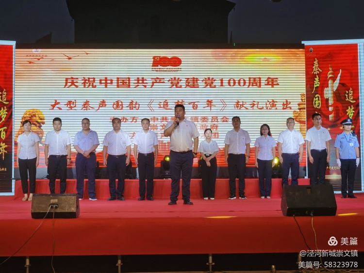 泾河新城崇文镇党委书记周亮上台致辞,感谢各位领导、党员同志们及群众朋友们的到来。怀揣着对祖国母亲的祝福,沐浴着深厚的党恩,一曲《红船颂》正式拉开帷幕,20余个精彩纷呈的节目让人目不暇接。舞蹈《东方红的故事》、小品《使命》展现了革命是广阔的,革命感情是丰富的,歌曲《十送红军》、《过雪山草地》、《军民大生产》,戏曲《红灯记》、《金沙滩》,带领观众追忆岁月,赞颂党恩,掀起一阵阵爱党爱国热浪;学党史、感党恩、听党话、跟党走,陕北说书《亿万人民感恩党》、戏曲《颂照金》,诉说尊党、爱党、敬党的心声; 歌曲《奔驰在祖国的大地上》、《红旗飘飘》展示出积极向上、朝气蓬勃的精神面貌;家是最小国,国是千万家,歌曲《我的家乡在陕西》 、《两个八年不能忘》,大家心连心,奋斗新时代。
