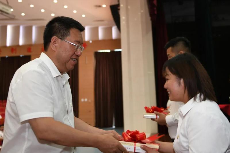 集中宣誓后,张宏伟为新党员代表赠送了《中国共产党章程》及党史书籍,并以一名老党员的名义,向新加入党组织的优秀同志表示祝贺。他希望每位新党员都要认真贯彻落实习近平总书记提出的“五项要求”、“五个扎实”,胸怀大局、立足本职、锐意进取,积极投身于谱写泾河新城新时代追赶超越新篇章的实践中。