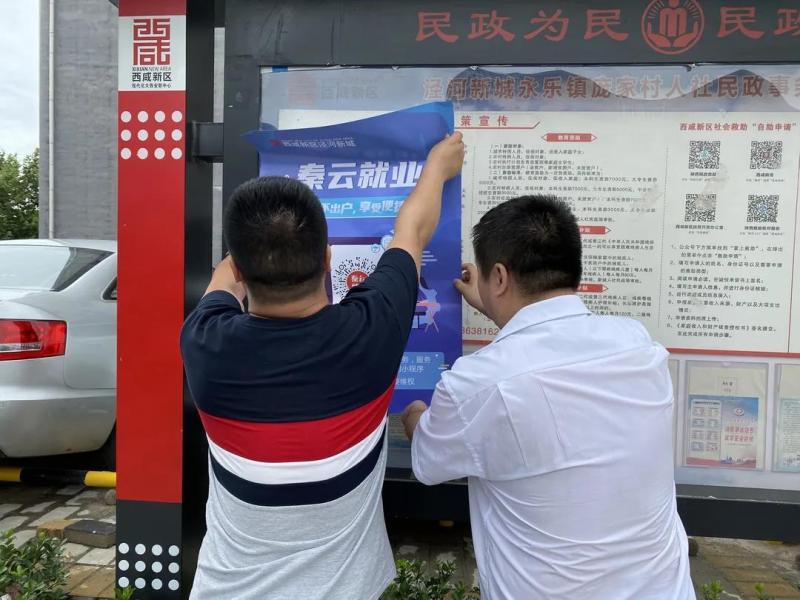 人社民政局充分利用好“秦云就业”平台,大力推广“西咸易就业”互联网公共就业综合信息服务平台,利用新媒体、互联网、可移动便携设备、触屏系统等,大力宣传求职创业、职业培训、一次性创业补贴、创业担保贷款、D/E类人才认定等惠民政策,为社区居民提供方便快捷的求职招聘、信息获取和就业事项办理等就业创业服务;同时深入社区将相关政策印制成册向社区居民进行发放讲解,提高社区居民就业创业积极性。