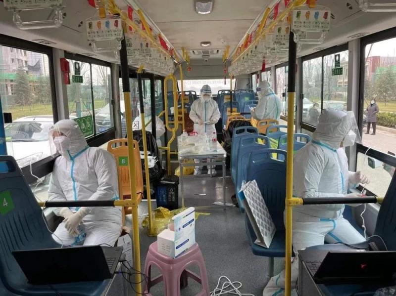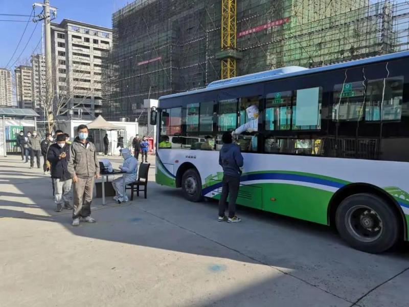 西咸新区沣东新城,一处项目工地旁,“移动核酸检测队”正在抓紧工作。这支核酸检测队由1辆检测大巴、1辆保障专用车、2-3名医护人员和8名住建局工作人员组成。按照核酸检测要求和建筑工地需求,移动检测车队会定期开车循环于各个建筑工地,“核酸就地做,快速出结果,让项目方和工友们都安心”。