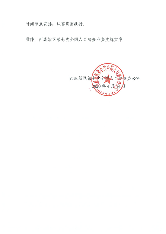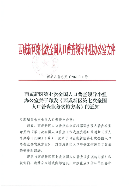 【文件通知】西咸新区第七次全国人口普查领导小组办公室关于印发《西咸新区第七次全国人口普查业务实施方案》的通知