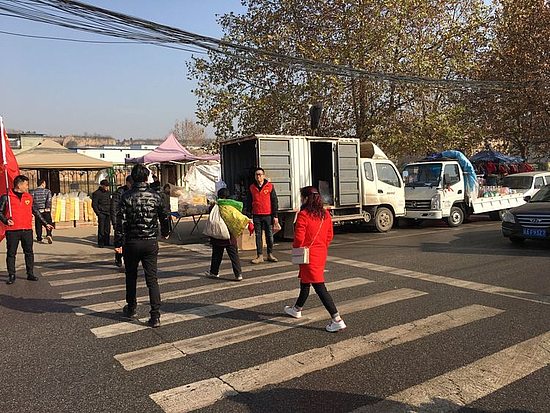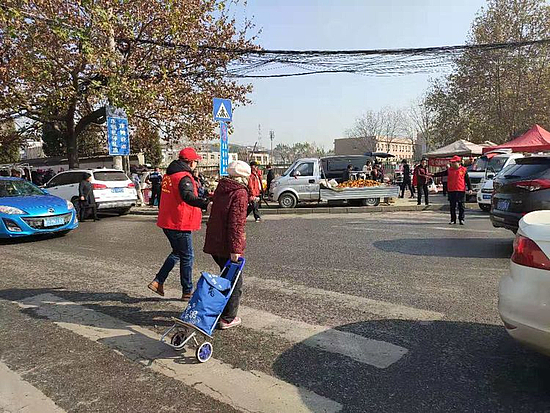 “给斑马线上的人先走,谢谢啦!”12月5日中午,街道市场、渭电社区门口,正阳新时代文明实践所志愿者们,顶着寒冷,身穿红马甲,头戴小红帽,正在认真地进行礼让斑马线志愿服务活动。