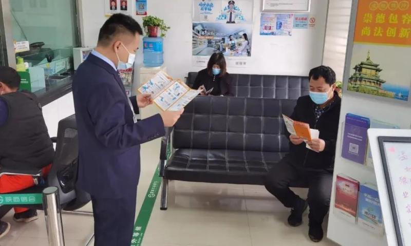 渭城农商银行周陵支行发放宣传彩页,耐心向群众讲解