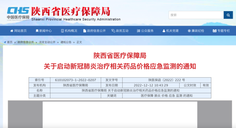近日,陕西省医保部门在全省范围内启动新冠肺炎治疗相关药品价格应急监测。