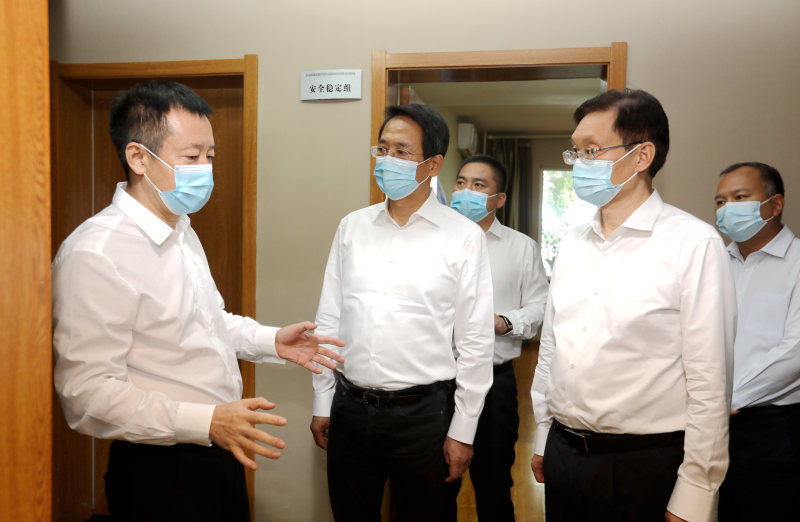 杨仁华、姜建春首先来到机场疫情防控指挥部,详细了解机构运转、人员力量配备和防控措施落实情况,随后来到机场旅客转运分流中心,调研“点对点”转运和服务保障工作,听取国内中高风险地区来陕旅客分流转运工作汇报。在机场T3航站楼国际保障专班专用通道和定点留观酒店,杨仁华、姜建春详细了解了国际到达航班和工作人员闭环管理、机场一线工作人员闭环管理和隔离点消杀及医疗废弃物处置,随后在西咸新区疫情防控指挥部调研“一办十二组”机构设置和人员配备情况。