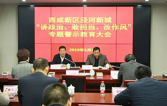 1月11日上午,西咸新区泾河新城召开“讲政治、敢担当、改作风”专题警示教育大会。西咸新区党工委委员、泾河新城党委书记、管委会主任张宏伟出席会议并讲话。会议由泾河新城党委委员、纪委书记徐满主持。