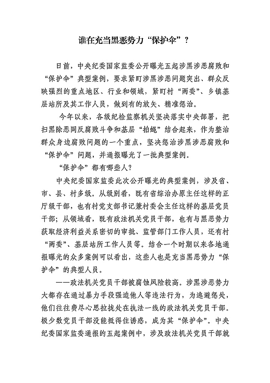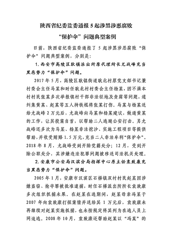 西咸新区扫黑除恶专项斗争“保护伞”典型案例警示教育选编
