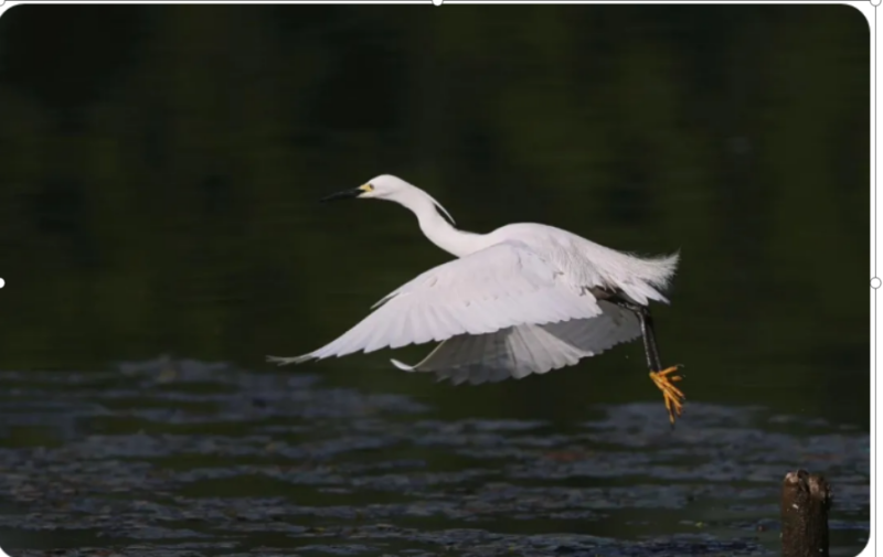 形态特征:中等体型(60厘米)的白色鹭,体型较大而纤瘦,嘴及腿黑色,趾黄色,繁殖羽纯白,颈背具细长饰羽,背及胸具蓑状羽。