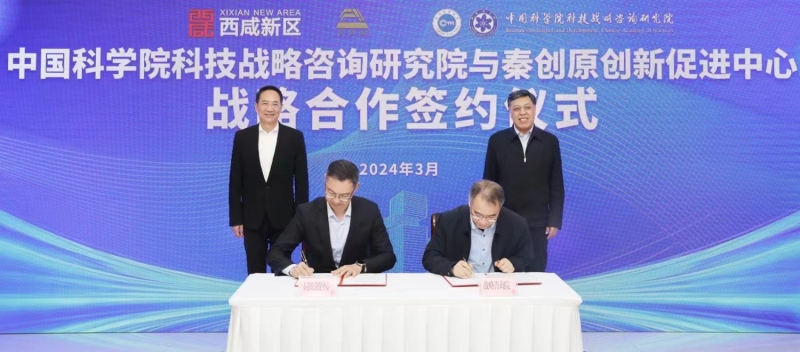3月25日,中国科学院科技战略咨询研究院与秦创原创新促进中心签署合作协议,在秦创原总窗口西咸新区建立调研点,共同服务国家重大研究任务促进区域经济发展。