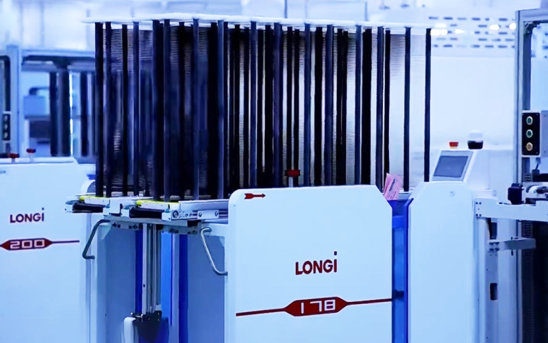 2022年,秦创原光伏创新中心·隆基中央研究院和隆基绿能高效单晶电池项目先后投用投产。2023年,隆基绿能再次追加投资,总投资452亿元的隆基150GW产业项目落户开工。也是在这一年,总投资201亿元的隆基年产29GW单晶电池项目二号、三号车间全面投产,加上此前已经投产的一号车间,3个生产车间共56条生产线。