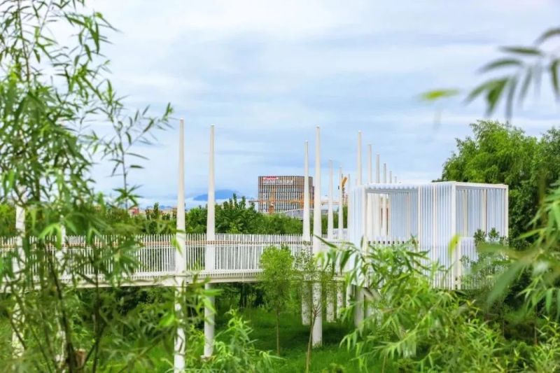 距王道新苑不到两公里就是新渭沙湿地。这里位于创新港东侧,分为现代活动、自然修复、文化岛屿3大功能区,白色栈道在绿色中蜿蜒曲折,有种“小清新”与“慢生活”的别致韵味。