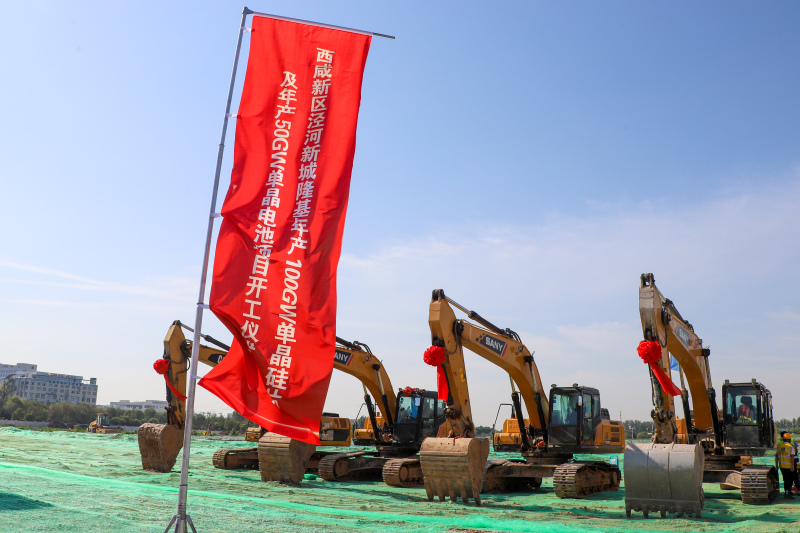 6月15日上午,隆基年产100GW单晶硅片及年产50GW单晶电池项目厂区在西咸新区泾河新城开工建设,项目总投资约452亿元,是隆基公司全球建设规模最大、产能最高、技术最先进的光伏生产基地,建成后将带动就业1.5万人。