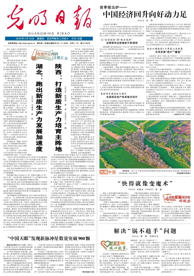 今天,《光明日报》头版头条刊发《陕西:打造新质生产力培育主阵地》,聚焦西咸新区盘活科教资源,打通科研成果转化堵点加速形成新质生产力,全文如下。