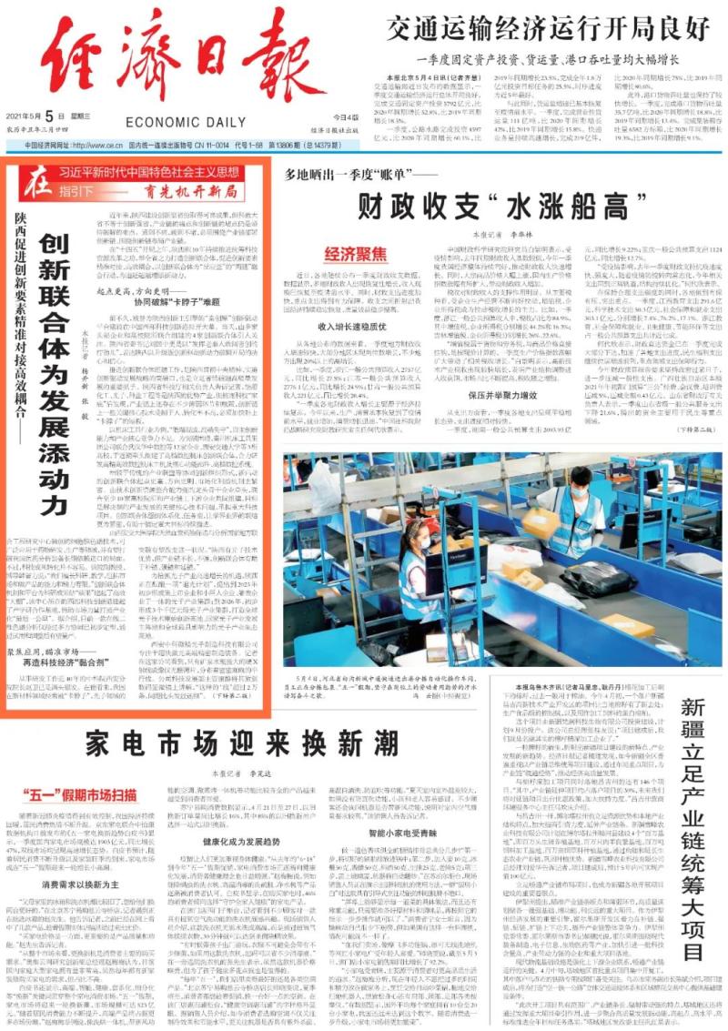 5月5日经济日报头版头条刊发《陕西促进创新要素精准对接高效耦合——创新联合体为发展添动力》聚焦西咸新区围绕产业链和创新链互动和对接,从创新机制着手深化拓展服务链,为陕西追赶超越增添新动力,全文如下: