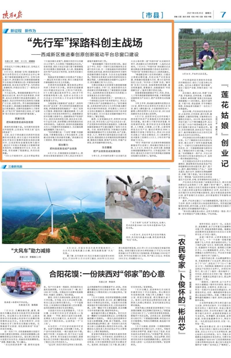 陕西日报近日刊发《西咸新区推进秦创原创新驱动平台总窗口建设》聚焦新区加快推动科技管理和运行机制建设,完善科技创新和人才培育体系,以“先行军”探路科创主战场以“金牌服务”助力,我省打造中国科创“新高地”。