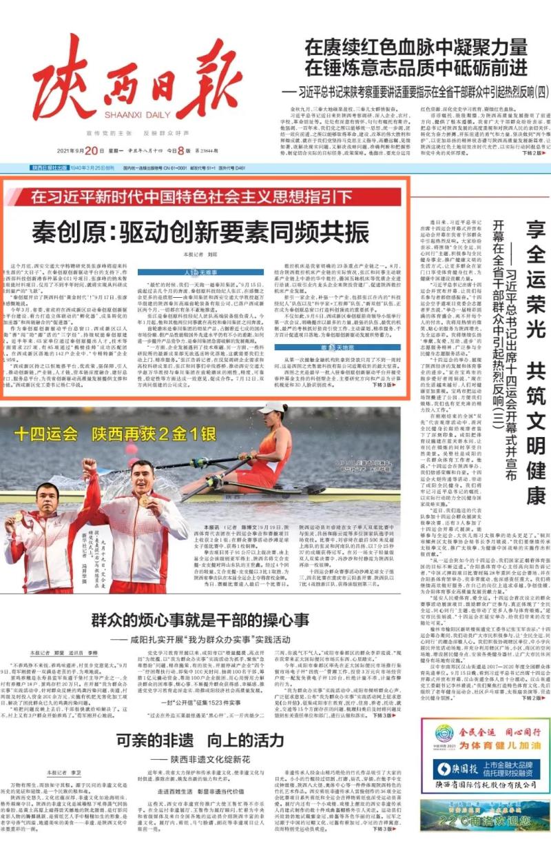 今天,陕西日报头版头条刊发《秦创原:驱动创新要素同频共振》聚焦西咸新区以人“勤”善“闯”助“源”活的“三字经”持续赋能秦创原建设,为我省创新驱动高质量发展提供支撑和动能。