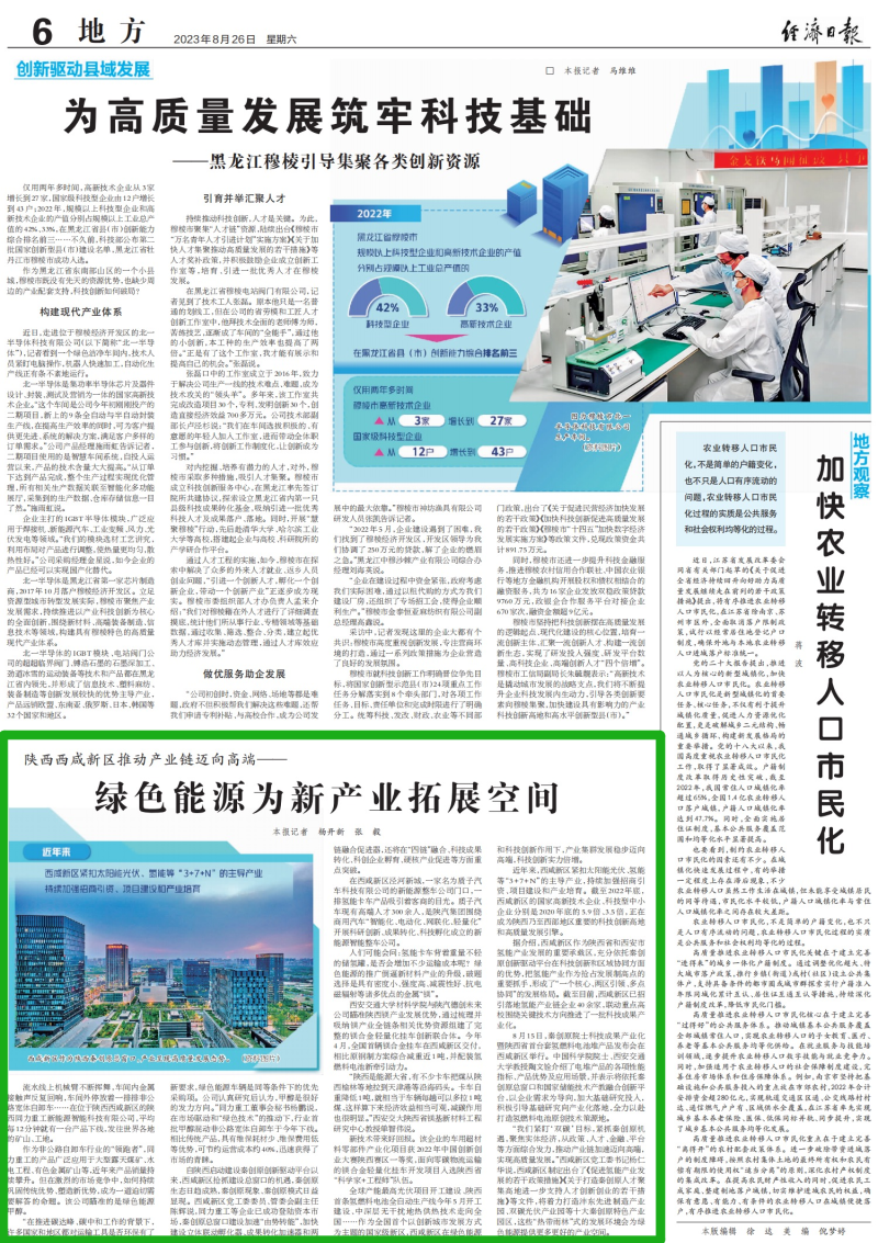 今天,经济日报刊发《绿色能源为新产业拓展空间》,聚焦西咸新区紧扣太阳能光伏、氢能等主导产业持续加强招商引资、项目建设和产业培育推动秦创原总窗口由“势”转“能”,全文如下。