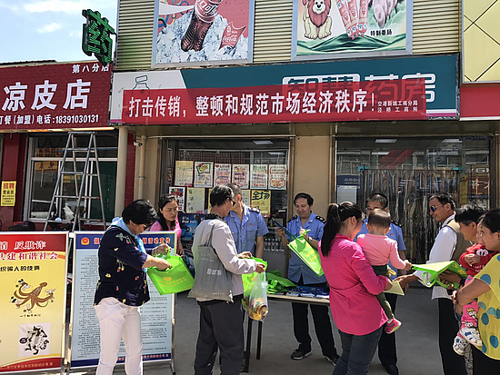 2017年6月6日,空港新城分局泾桥工商所,深入辖区太平镇柳村集贸市场,开展规范直销和打击传销相关法律知识的普及宣传活动。