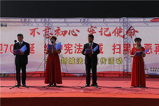 在庆祝中华人民共和国新中国成立70周年国庆节来临之际,为宣传弘扬《宪法》精神、维护《宪法》权威,进一步强化扫黑除恶专项斗争,9月26日上午,西咸新区泾河新城在泾干湖公园广场举办“不忘初心、牢记使命”为主题法治宣传活动。