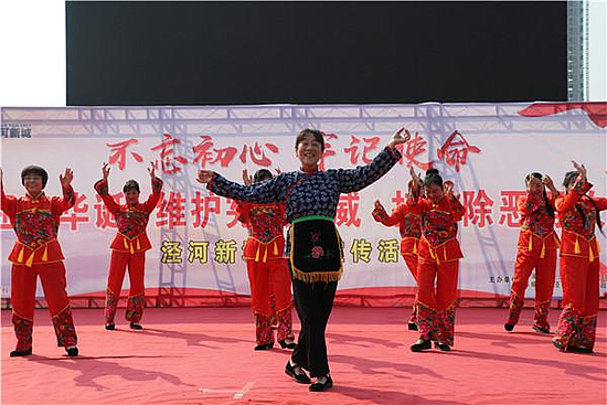 在法治宣传活动现场,来自泾河新城群众文艺团队,精心编排了20余个与群众生产生活息息相关的法治文艺节目,《扫黑除恶当先锋》、《歌唱祖国》、《情牵梁家河》、《厉害了我的国》等节目,颂扬了新中国成立70年来的伟大成就。文艺表演与普及宪法知识、深化扫黑除恶宣传同时开展,吸引了1000余名群众驻足观看。现场有奖问答环节增强互动性,让群众更加深入理解法律知识,树立办事依法、遇事找法、解决问题用法、化解矛盾靠法的法律意识。同时,新城各执法单位现场设立法治宣传咨询点,积极向过往群众发放治安处罚、食品安全、安全生产、消防安全、人民调解等方面的宣传资料,耐心为前来咨询的群众解答法律疑问,共发出各类法治宣传资料20000余份,现场解答法律咨询50人次。