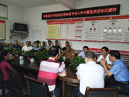 党员干部带头讲、理论专家专题讲、群众口口相传通俗讲。为宣传发动广大群众积极参与扫黑除恶专项斗争,营造浓厚社会氛围,6月24日,西咸新区沣西新城邀请国家高级检察官、咸阳市检察机关预防犯罪宣讲团成员黄振涛同志深入钓台街道东江渡村开展扫黑除恶专项斗争主题宣讲,到场听讲干部群众40余人。