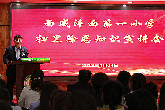 4月24日下午,学校例行召开全体教职工会议,会上开展本月主题宣讲。党支部负责人总结扫黑除恶专项斗争以来学校开展的主要工作,对线索摸排和走访调查内容进行解读。