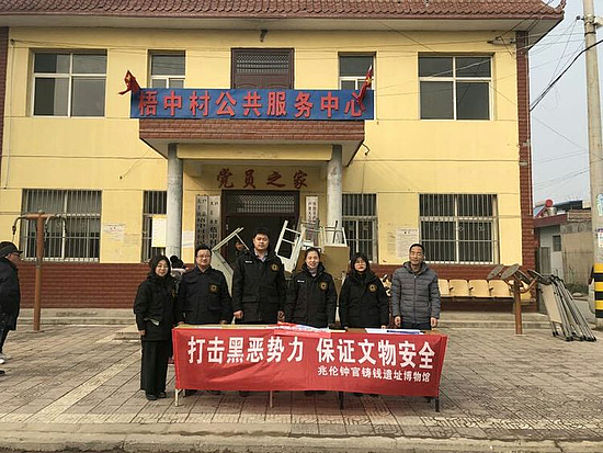 近日,兆伦钟官铸钱遗址博物馆在遗址区域梧中村村委会开展“打击黑恶势力,保障文物安全”专项宣传活动。