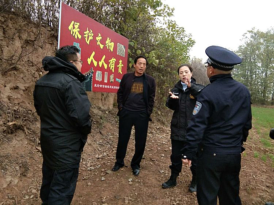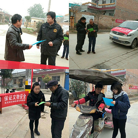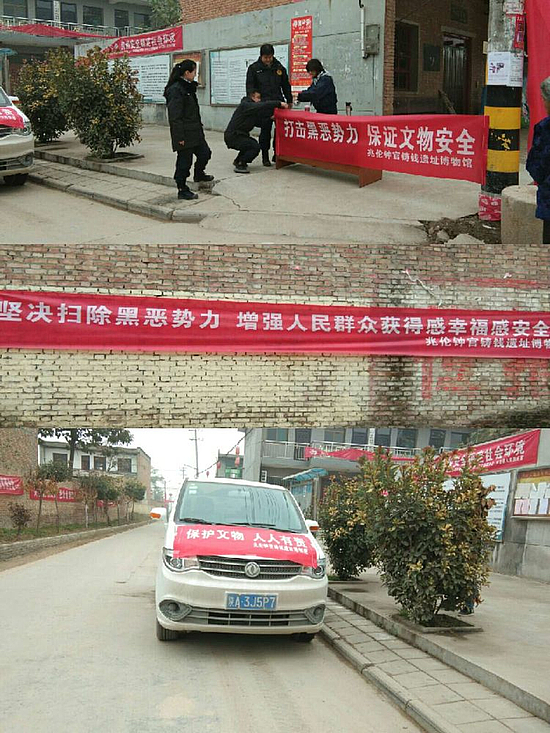 上午,在遗址中心区域兆伦村村委会设置宣传点,向到场群众发放彩页,并向他们普及“扫黑除恶”应知应会内容与打击文物犯罪知识,明确指出倒卖文物、盗窃古遗址古墓是违法犯罪行为,鼓励群众积极参与到“扫黑除恶,保证文物安全”活动中来。