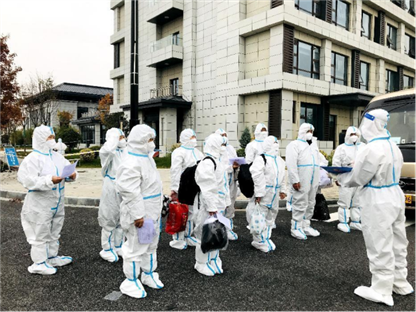 集中隔离点是阻断疫情传播蔓延的重要防线,也是抗击疫情的前沿阵地。5名处级干部、25名员工及若干公安干警和医护人员临危受命,逆向奔赴6个隔离点,紧锣密鼓开展各项工作。渭柳公寓隔离点雷海山同志是一名信息员,面对铺天盖地而来的表格,他不分昼夜、和衣而眠,力求第一时间把数据准确地传递给疫情指挥部。汉庭酒店隔离点副站长郭君在保证整个专班正常运转的情况下,不断细化节点流线,提出个人垃圾处置“压缩法”,有效减少医废垃圾转运体积和重量,避免垃圾袋被戳破带来的泄露危险……集中隔离点的党员干部们日夜坚守、团结一心、攻坚克难,成为守护新城人民生命健康的一道重要防线。