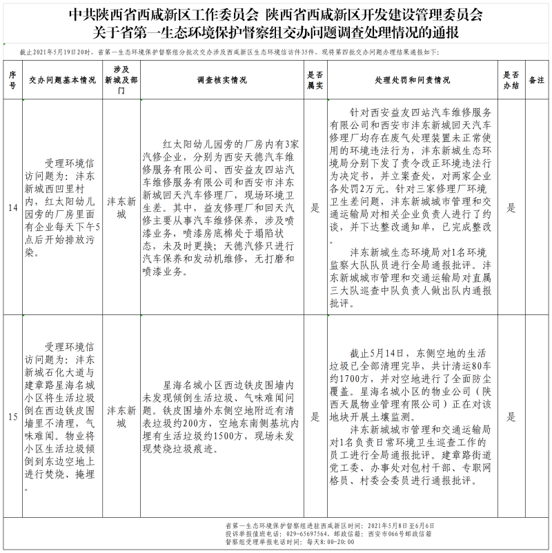 关于省第一生态环境保护督察组交办问题调查处理情况的通报