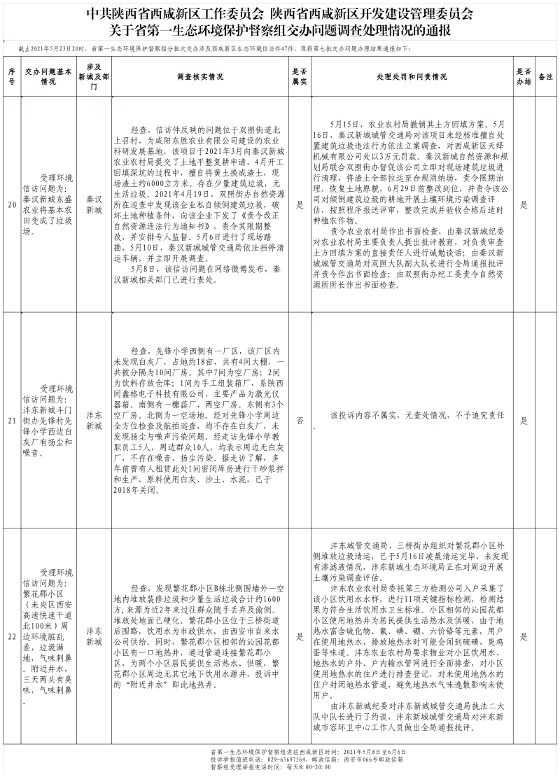 关于省第一生态环境保护督察组交办问题调查处理情况的通报