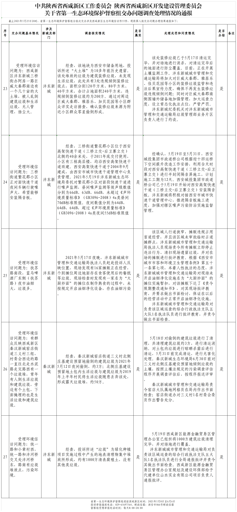 关于省第一生态环境保护督察组交办问题调查处理情况的通报