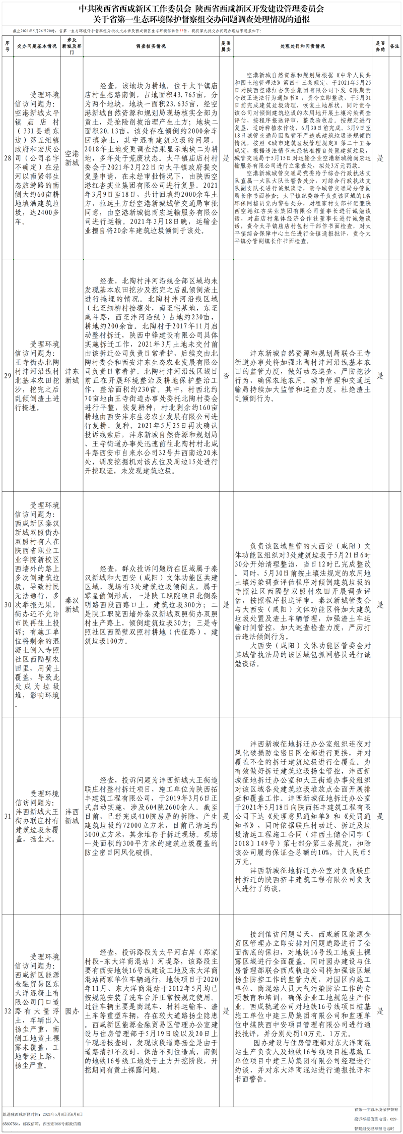 关于省第一生态环保督察组交办问题调查处理情况的通报