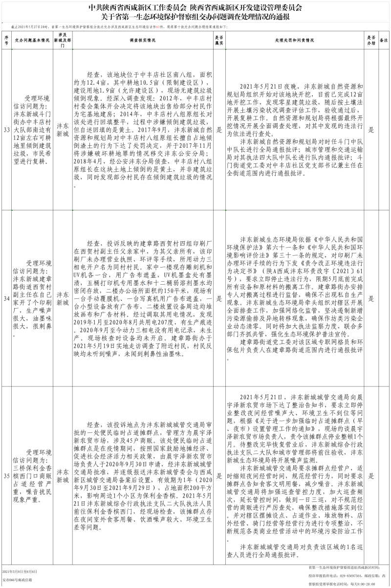 关于省第一生态环境保护督察组交办问题调查处理情况的通报