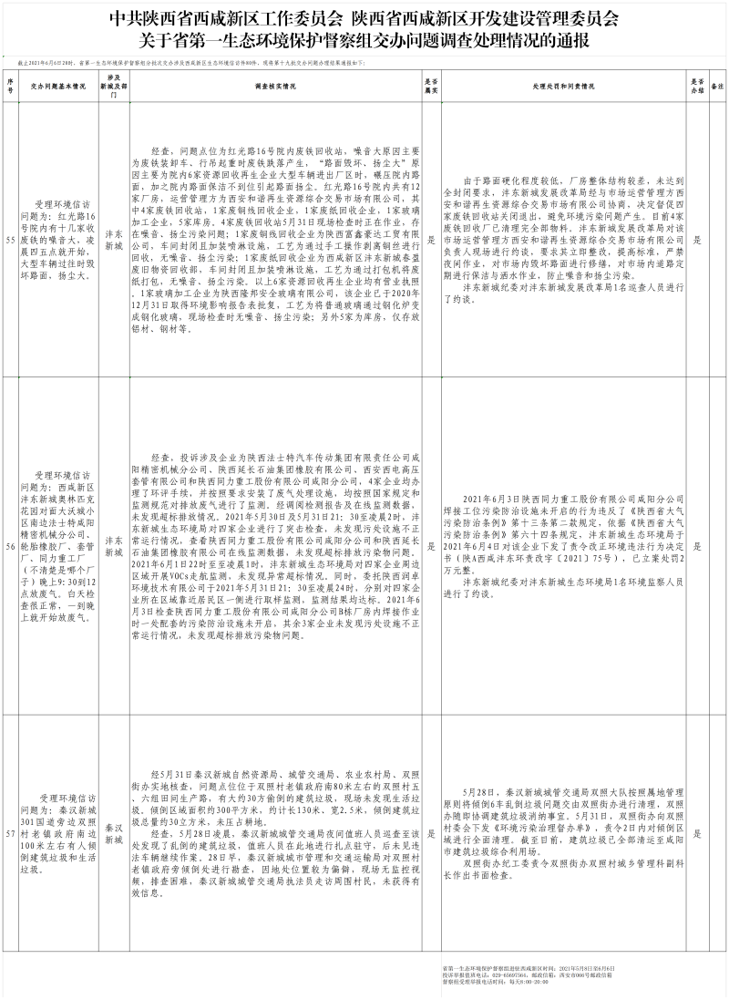 关于省第一生态环境保护督察组交办问题调查处理情况的通报