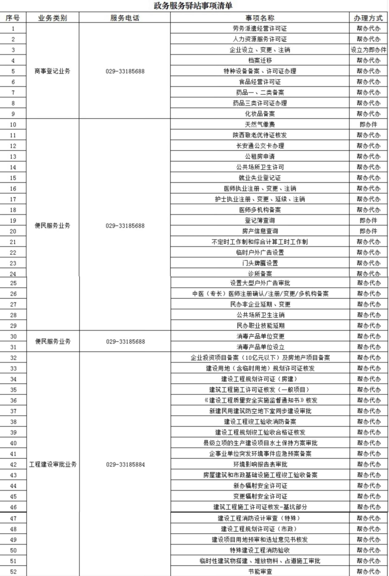 西咸新区政务服务(秦汉)中心根据产业园区特色及企业需求,梳理出涵盖商事登记、工程建设审批、电子税务等52项高频事项清单,咸阳-西咸新区政务服务一体化“跨区通办”290项政务服务事项及陕西省政务服务平台上的733项和全市通办731项政务服务事项均可在驿站内通过多元化服务模式实现一站式办理。
