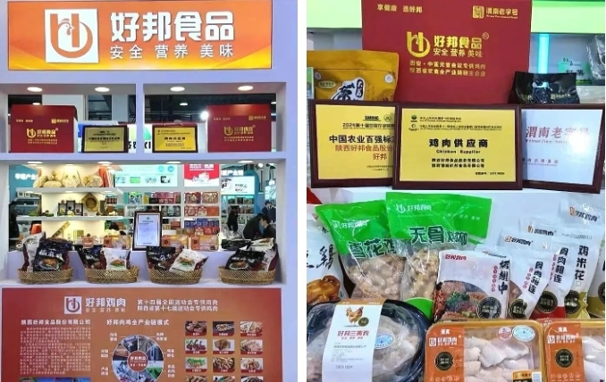 第三十二届中国杨凌农业高新科技成果博览会(以下简称“农高会”)正如火如荼进行中。在陕西特色现代农业展览馆(C馆)西咸新区展区,好邦鸡肉展台前人头攒动,雪花鸡柳等产品吸引大量采购商与市民驻足,工作人员忙得不亦乐乎,补货、介绍、打包连轴转,现场人气火爆。