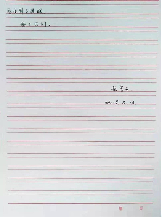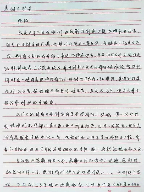 张亨子在西咸新区一个花艺园林公司工作,在她印象中,自己已经20多年没写过信,但8月12日,在西咸新区政务服务大厅遇见的人和事让她难以释怀,她找出信纸和笔,为那些仅一面之缘却提供无微不至帮助的人,写下一封感谢!