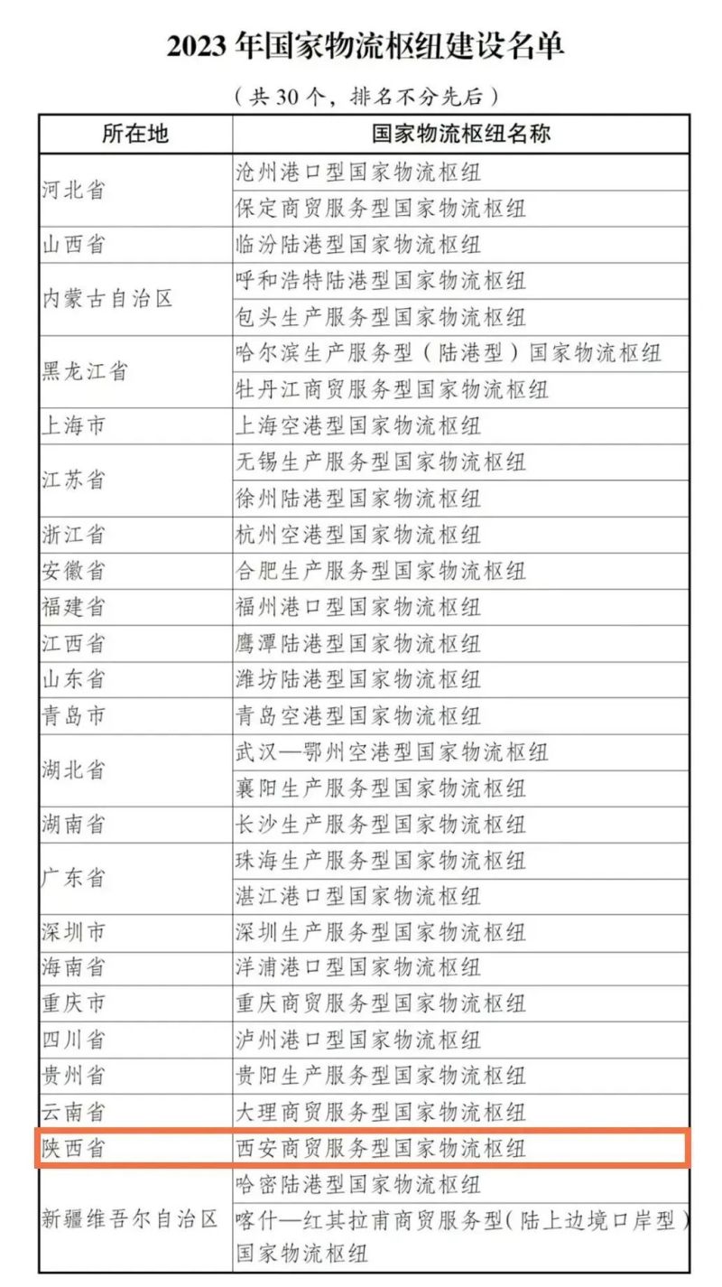 近日,国家发展改革委研究确定并正式发布2023年国家物流枢纽建设名单,西安商贸服务型国家物流枢纽成功入选。