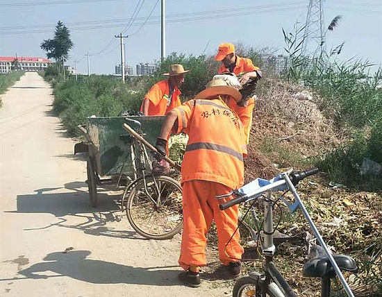 曹坊村清理门前屋后的堆积、杂草、淤泥