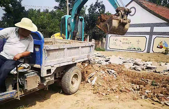 马务村清理街道砖石瓦砾、建筑垃圾残留