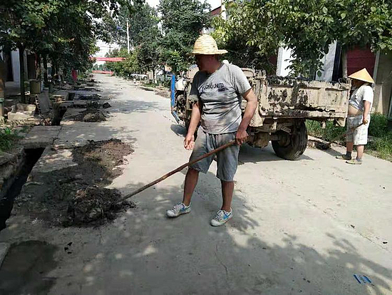 严小村清理下水道积泥
