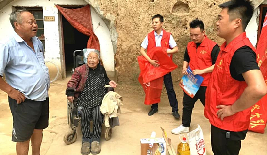 小瑶志愿者们根据崔墩子家的具体情况,带来了大米、面粉、食用油、牛奶等生活必需品,帮助母子俩清扫了院落卫生,和老人家聊起了家常。